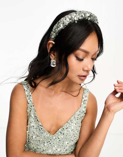 Maya Bridesmaids delicate sequin headband in sage (part of a set)