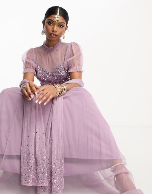 Maya delicate sequin lehenga skirt, scarf and crop top in lilac