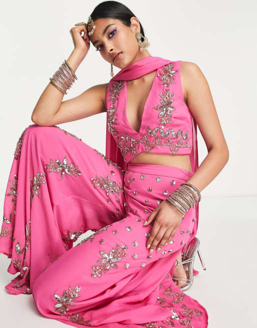 Maya geo embellished v neck crop top in pink (part of a set)