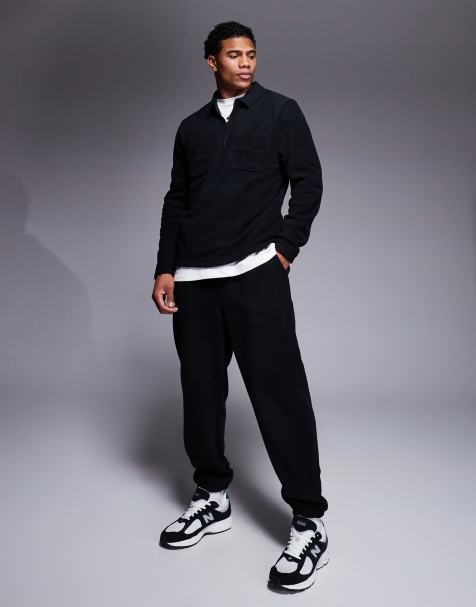 MORE COLOURSASOS DESIGN premium heavyweight straight leg joggers in 400gsm in black