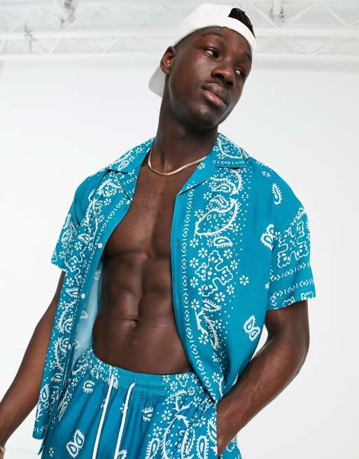 Mennace revere collared shirt in dark green with paisley print (part of a set)