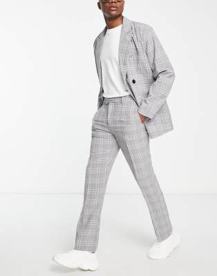Mennace straight leg suit pants in grey check