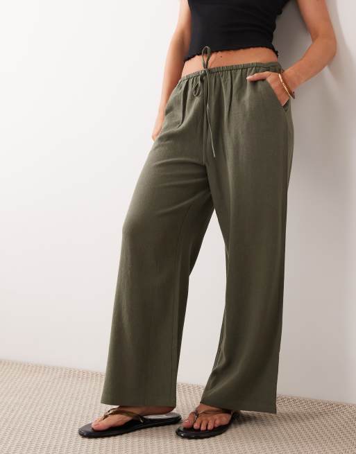 Miss Selfridge Petite linen mix pull on pants olive
