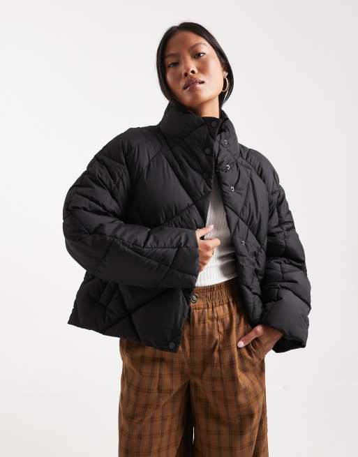 Miss Selfridge Petite oversized quilted funnel neck crop puffer jacket in black