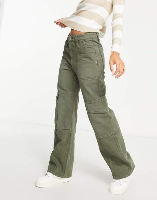 Miss Selfridge baggy cargo wide leg jeans in khaki