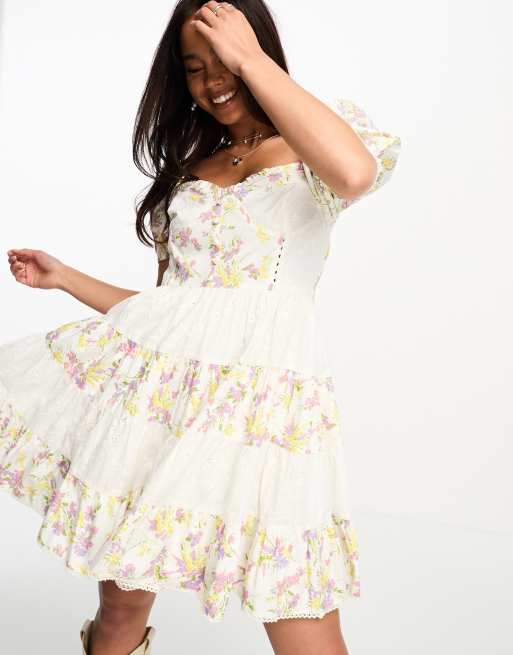 Miss Selfridge broderie fabric mix corset detail mini dress