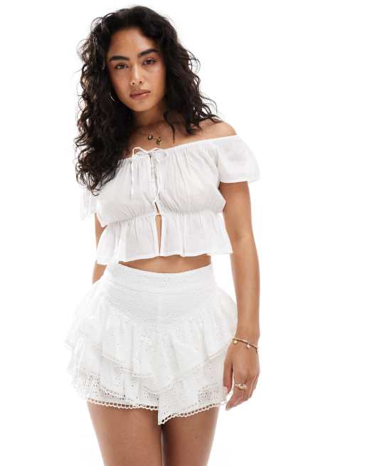 Miss Selfridge broderie ruffle mini shorts in white