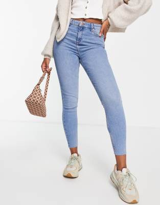 Miss Selfridge Emily high waist ankle grazer skinny jeans in midwash blue