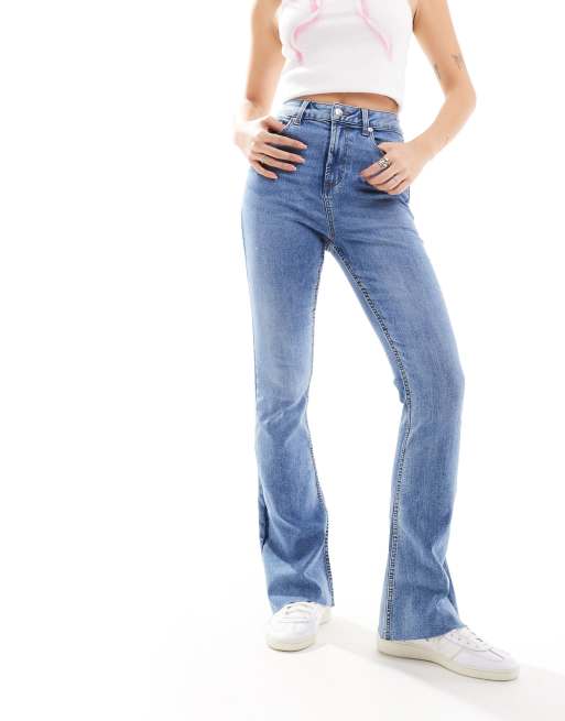 Miss Selfridge flare jeans in mid blue wash