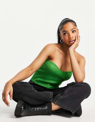 Miss Selfridge knit rib contour bandeau in green - LGREEN