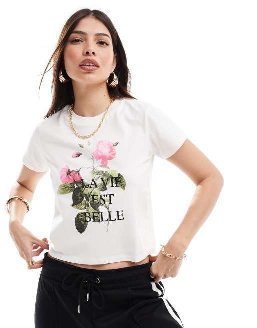 Miss Selfridge la vie est belle tee in white