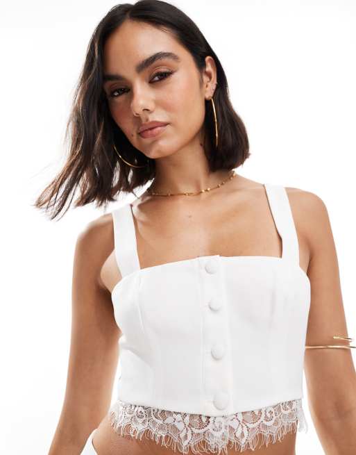 Miss Selfridge lace trim corset top in ivory (part of a set)