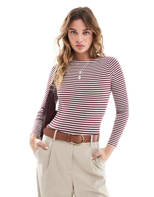 Miss Selfridge long sleeve boat neck bodysuit in stripe