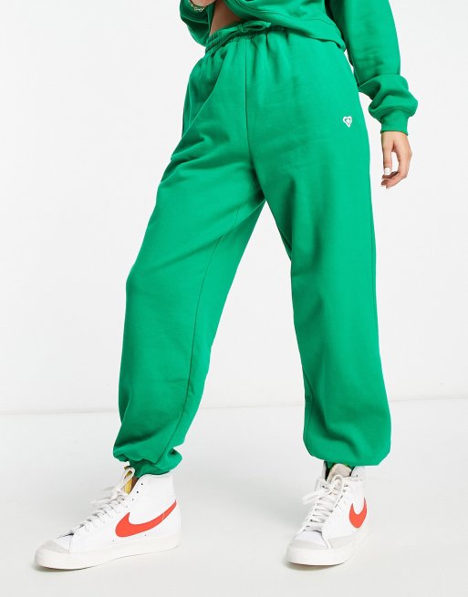 Miss Selfridge lounge slim trackies with heart embroidery in green (part of a set)