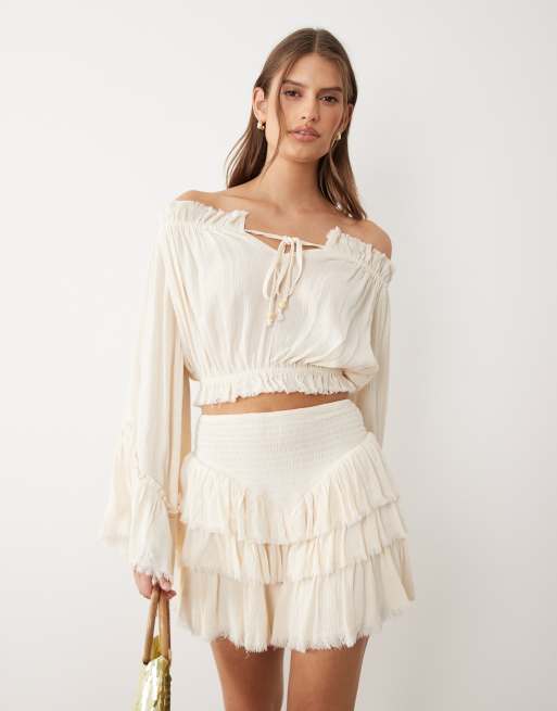 Miss Selfridge off shoulder boho blouse with fluted sleeves