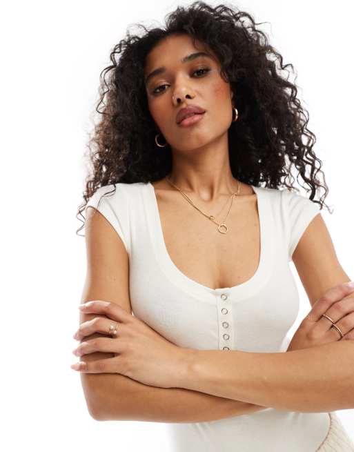 Miss Selfridge popper bodysuit in ecru