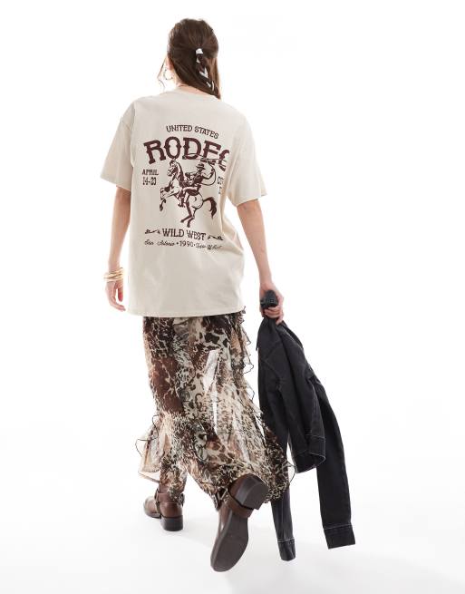 Miss Selfridge rodeo graphic t-shirt in sand