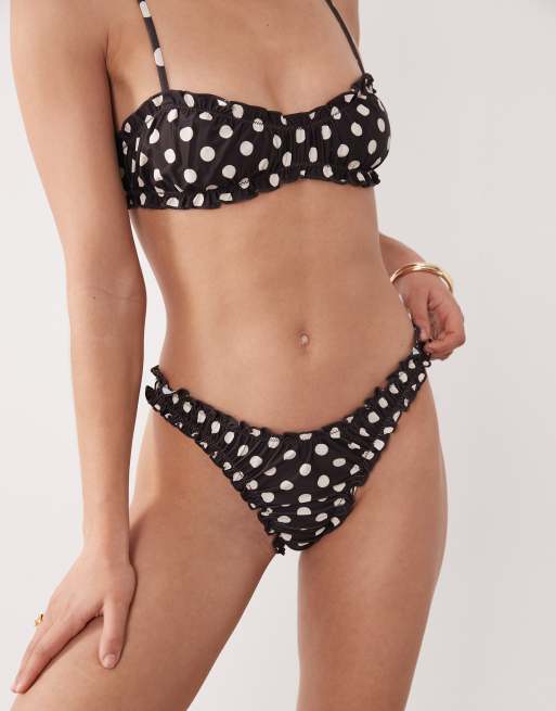 Miss Selfridge ruched frill bikini bottoms in chocolate spot