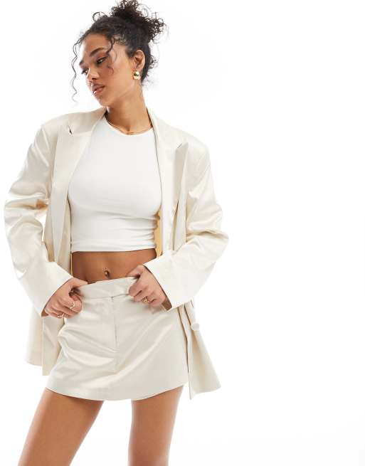 Miss Selfridge satin tailored micro mini skort in neutral (part of a set)