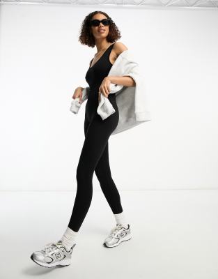 Miss Selfridge seamless cami scoop back unitard in black