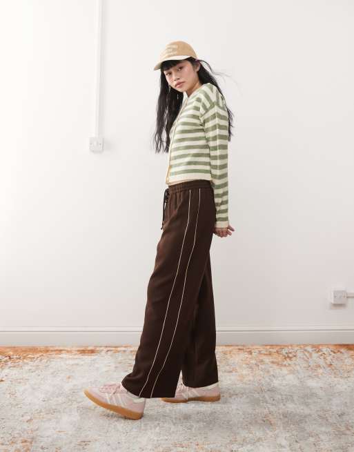 Miss Selfridge side stripe trackies in chocolate