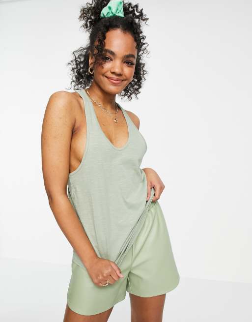 Miss Selfridge sleeveless drop armhole singlet top in khaki