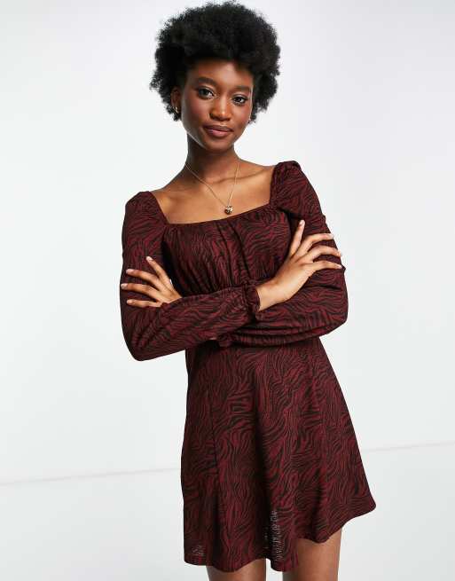 Miss Selfridge square neck fit & flare mini dress in zebra print