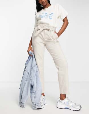 Miss Selfridge tie waist casual pants in stone