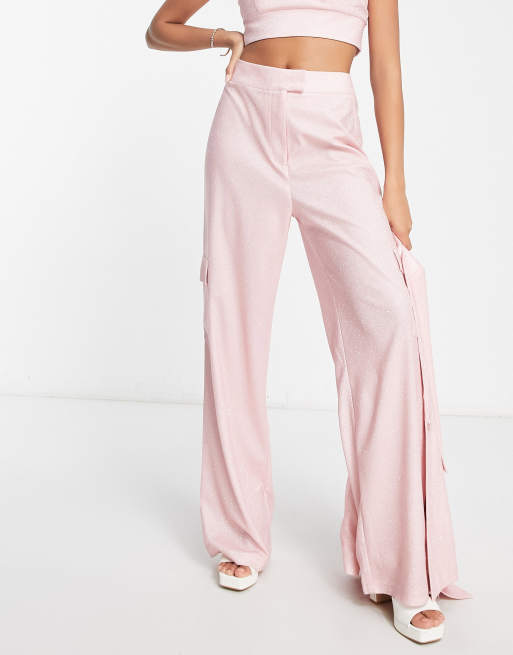 Miss Selfridge wide leg pants in pink glitter (part of a set)