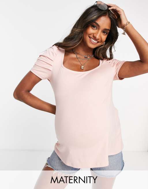 Missguided Maternity t-shirt with gathered sleeve in light pink