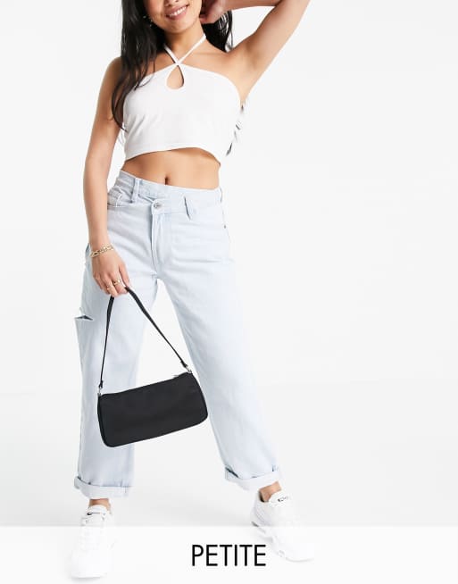 Missguided Petite dad jeans with asymmetric waist in blue