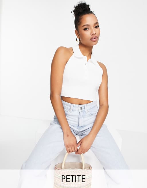 Missguided Petite halterneck crop top with collar in white