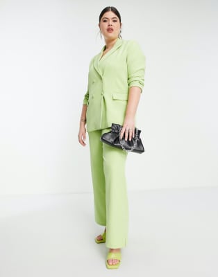 Missguided Plus double breasted blazer and wide leg pants in lime
