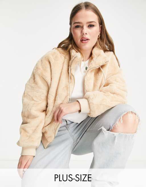 Missguided Plus faux fur bomber jacket in tan