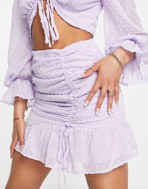 Missguided dobby mini skirt with ruched detail in lilac (Part of a set)