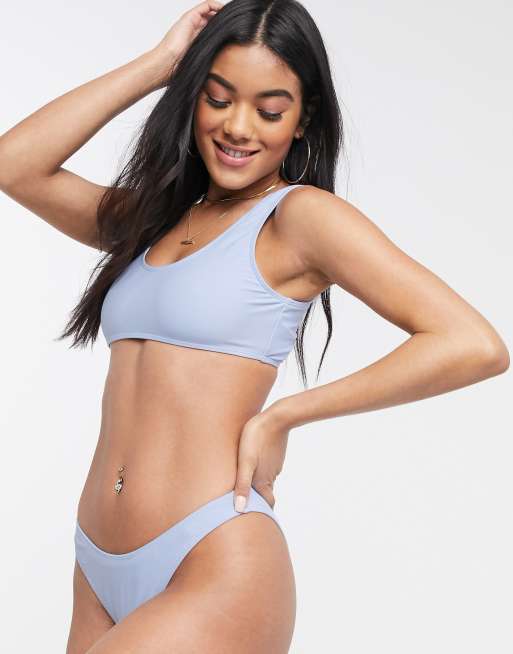 Missguided mix and match boomerang high leg bikini bottom in blue
