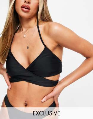 Missguided mix and match cross front bikini top in black
