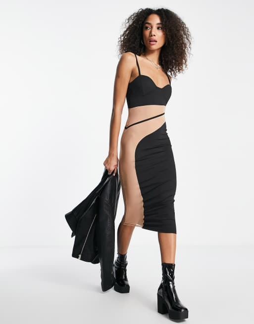 Missy Empire cami strap sheer panel midi dress in black