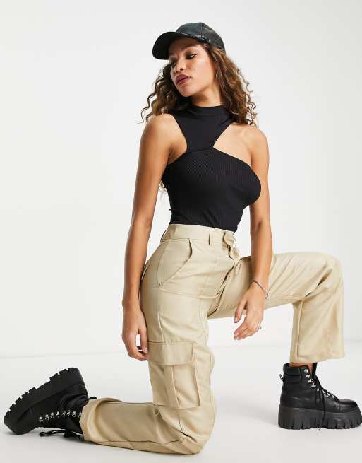 Missy Empire cropped cargo pants in stone (part of a set)