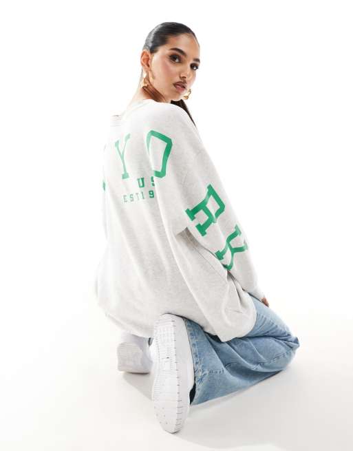 Missy Empire exclusive New York back slogan sweatshirt in grey marl (part of a set)