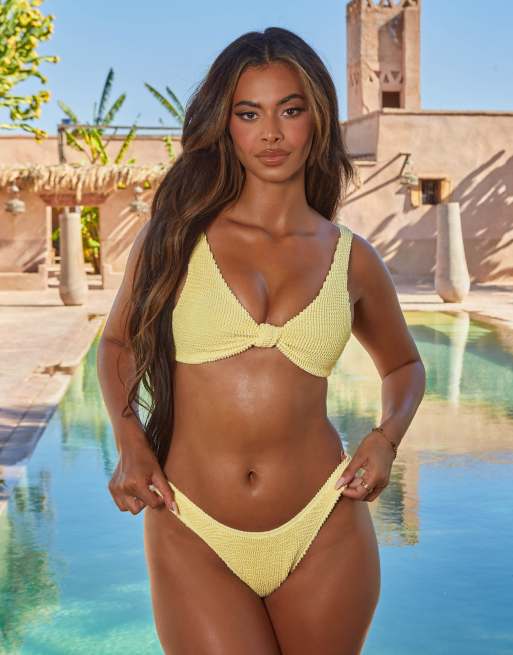 Moda Minx x Sophie Piper scrunch knot bikini top in lemon