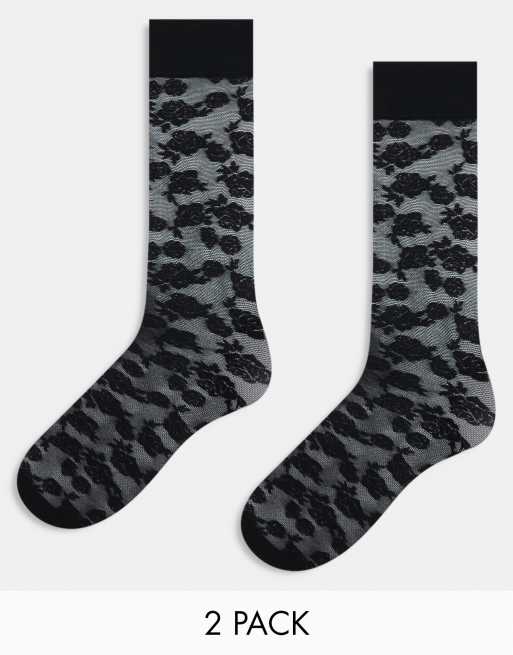 Monki 2 pack rose patterned knee high socks in black and white