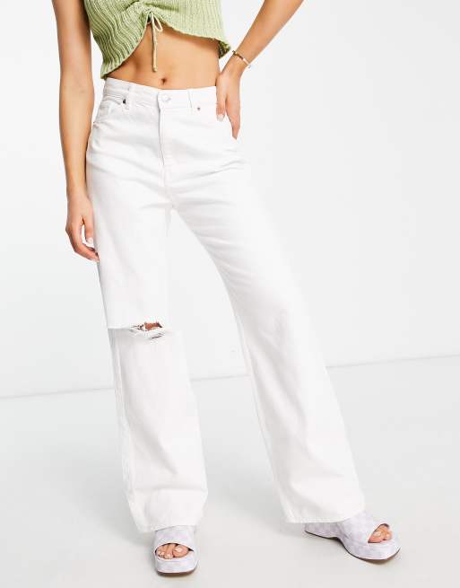 Monki baggy straight leg distressed jeans in white