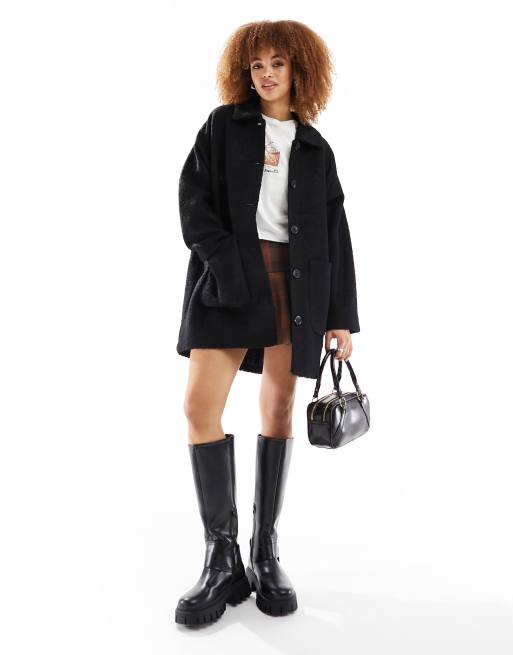 Monki brushed longline coat in black