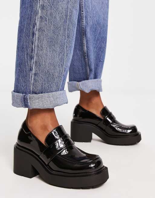 Monki heeled loafers in black