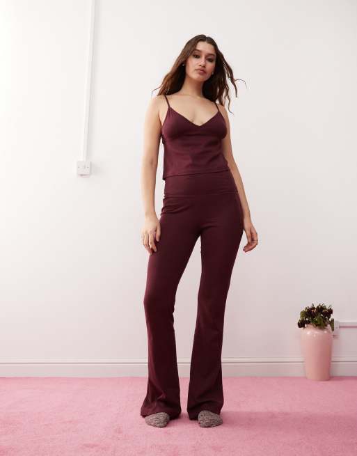 Monki Mix and Match frill cami pyjama tank top in burgundy