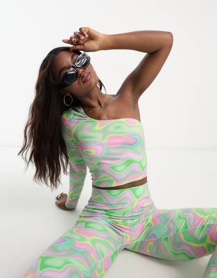 Monki one shoulder top in swirl print (part of a set)