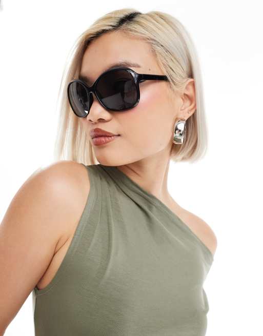 Monki oversized round sunglasses in black