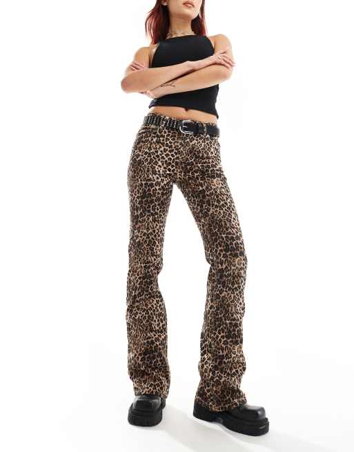 Monki regular fit flare cotton pants in brown leopard print