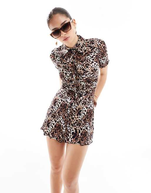 Monki ruched front shirt dress in leopard print